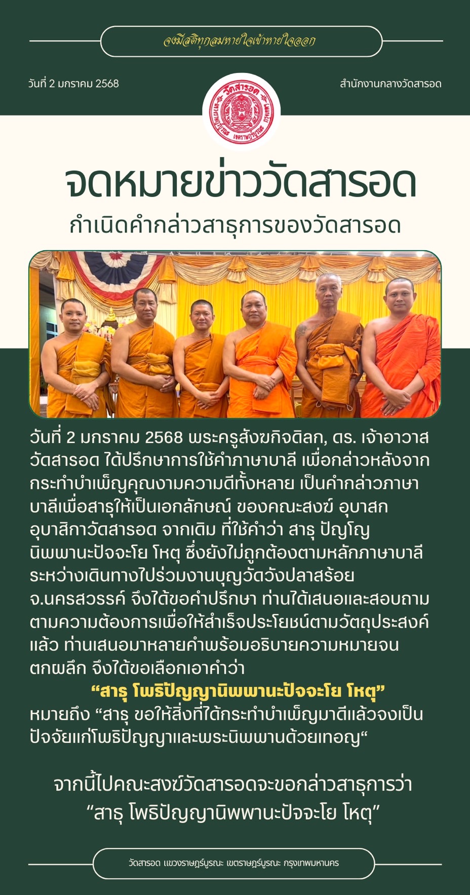กำเนิดคำกล่าวสาธุการของวัดสารอด
