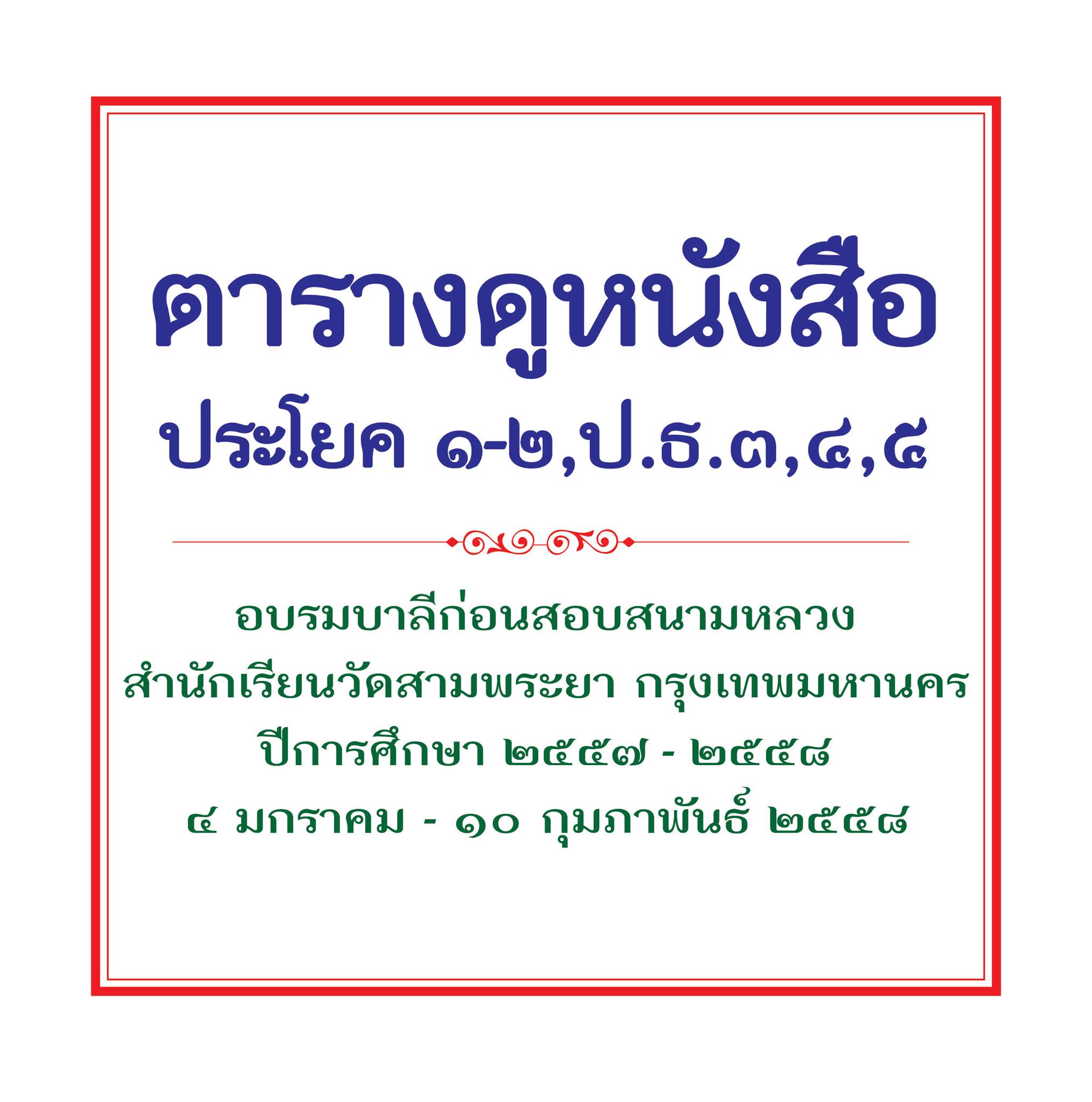 - ตารางดูหนังสือ ประโยค ๑-๒ วิชาไวยากรณ์